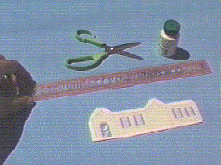 - Recorta la casita por afuera de las líneas exteriores, llevará estos sobrantes para poder pegarla.